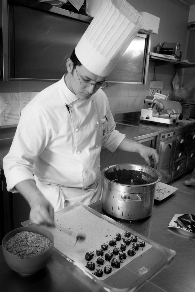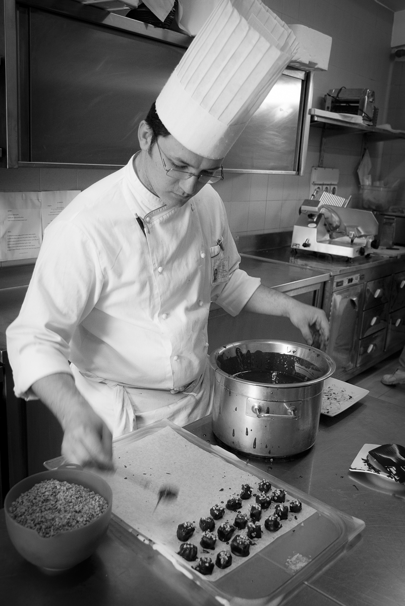 Al lavoro nella cucina del Ristorante Oasis, a Vallesaccarda (AV)