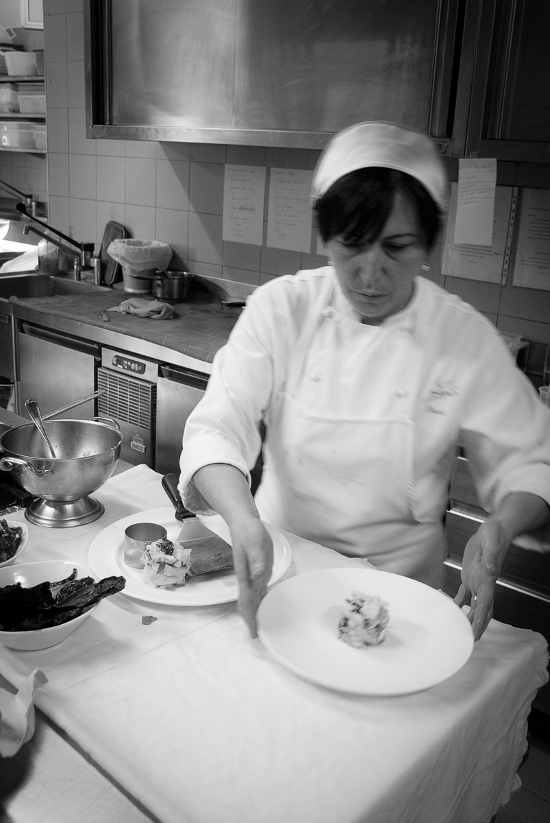La Signora Maria Luisa Fischetti (proprietaria insieme ai fratelli) nella cucina del Ristorante Oasis, a Vallesaccarda (AV)
