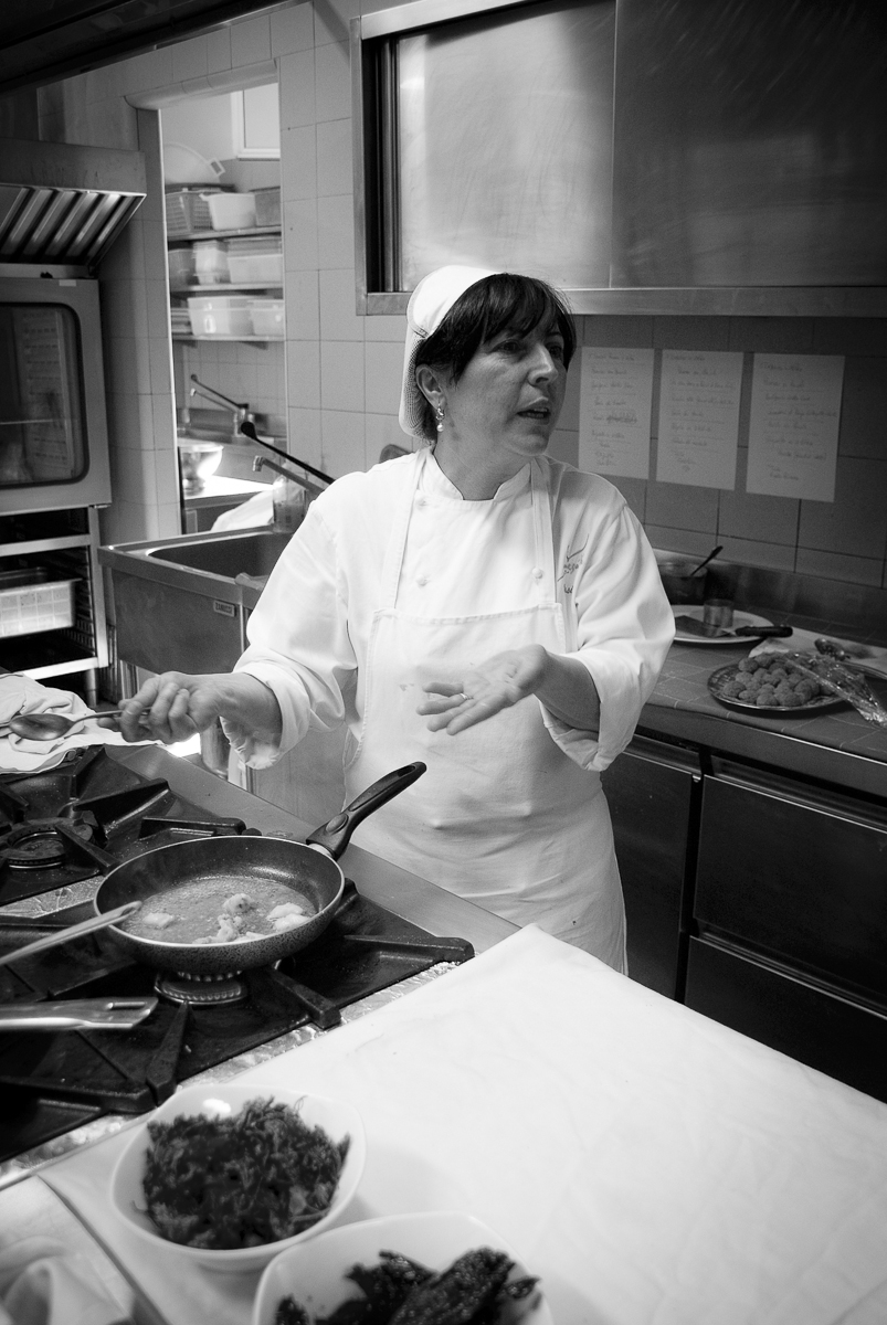 La Signora Maria Luisa Fischetti (proprietaria insieme ai fratelli) nella cucina del Ristorante Oasis, a Vallesaccarda (AV)