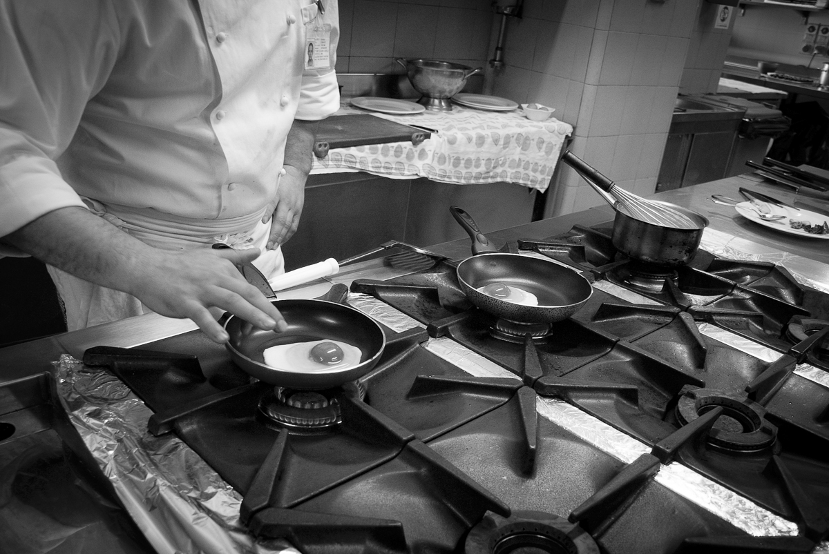 Al lavoro nella cucina del Ristorante Oasis, a Vallesaccarda (AV) prepazione dell’uovo al tartufo