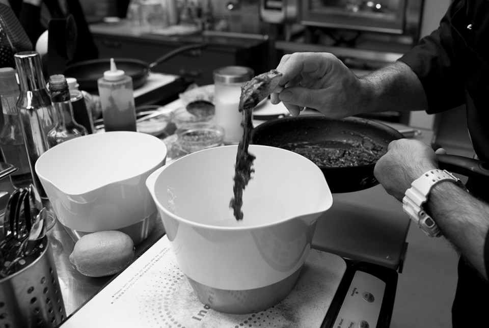 Lo Chef Antonio Sgarra durante una lezione di cucina sul “Fingerfood” presso l’Anice Verde ad Andria (BT)