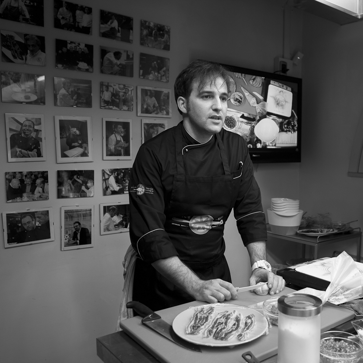 Lo Chef Antonio Sgarra durante una lezione di cucina sul “Fingerfood” presso l’Anice Verde ad Andria (BT)