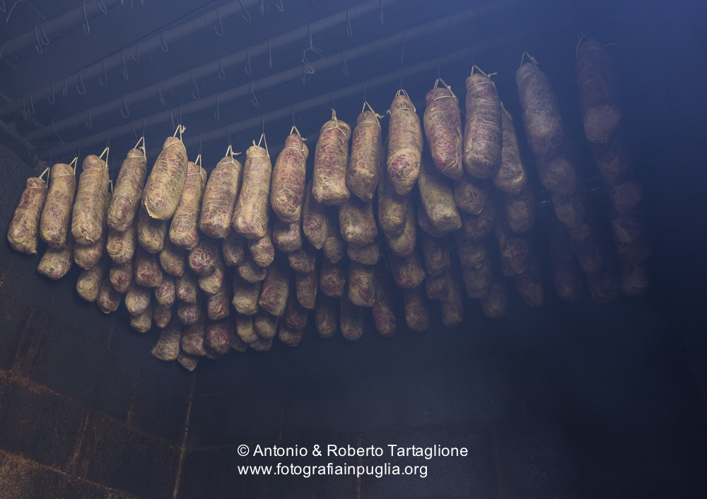 Fasi di lavorazione del capocollo di Martina Franca (TA), nel laboratorio di Michele Cito – – l’affumicatura