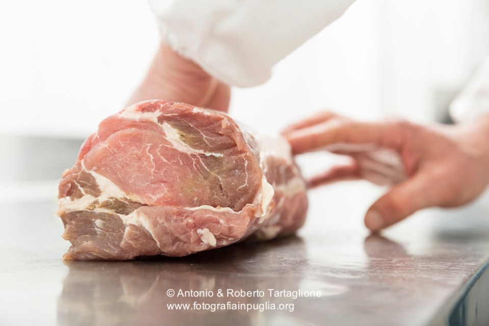Fasi di lavorazione del capocollo di Martina Franca (TA), nel laboratorio di Michele Cito