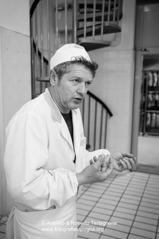 Michele Cito, imprenditore Socio del Presidio Slow Food “Capocollo di Martina Franca”, nel suo laboratorio
