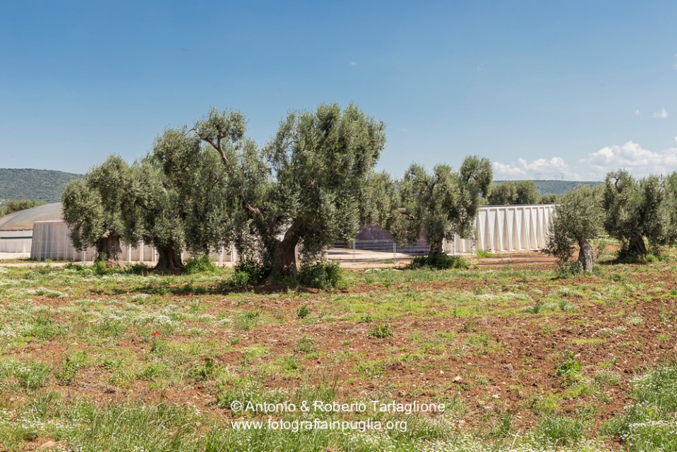 Uliveto nella Masseria del Duca, sede operativa dell’Azienda Agricola Fratelli Cassese, titolare del marchio InMasseria. I digestori sono parzialmente interrati e sono poco visibili perchè non superano l’altezza degli alberi.