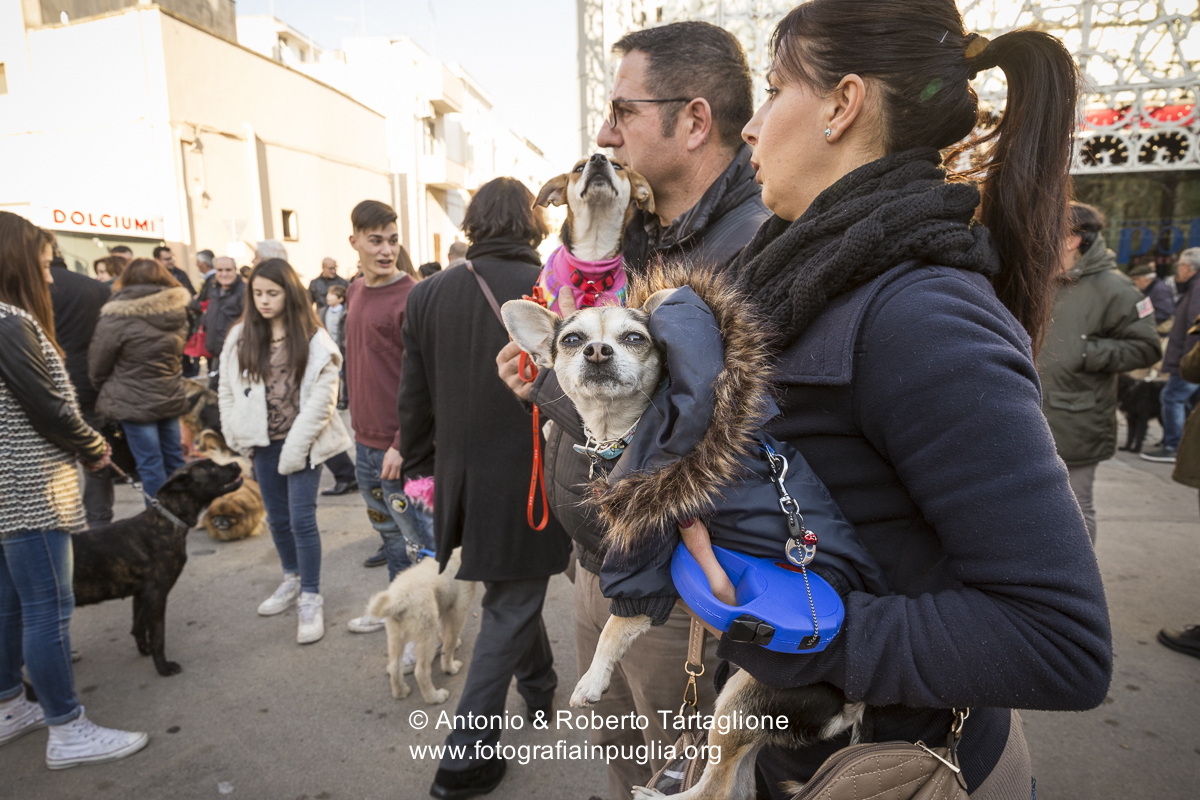 la benedizione degli animali sul sagrato della Chiesa di Sant’Antonio Abate a Nòvoli (LE)