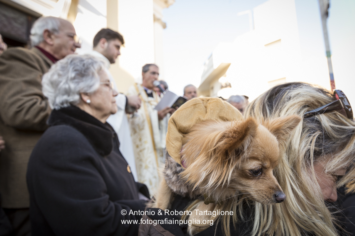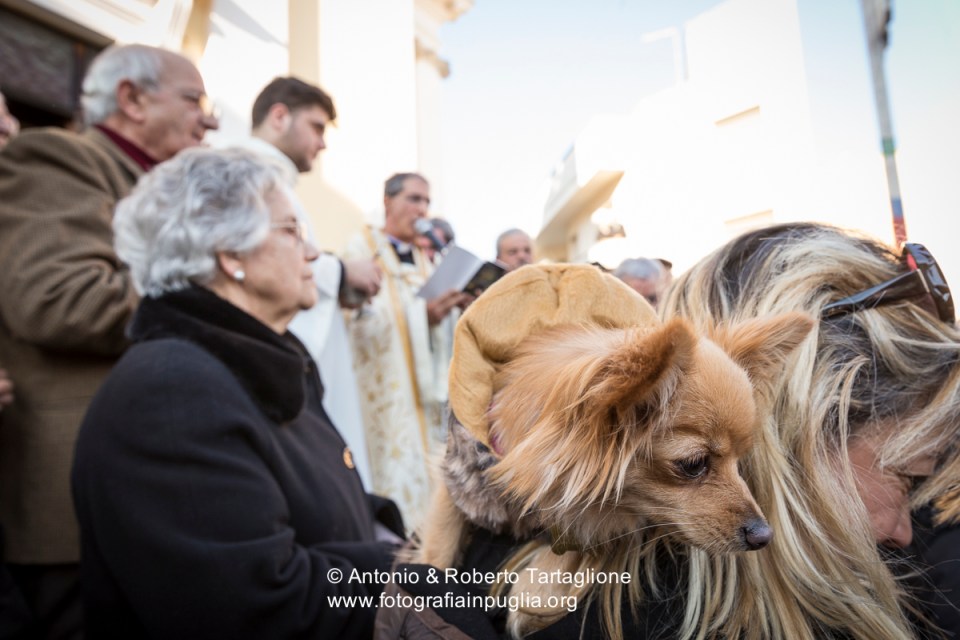 la benedizione degli animali sul sagrato della Chiesa di Sant’Antonio Abate a Nòvoli (LE)