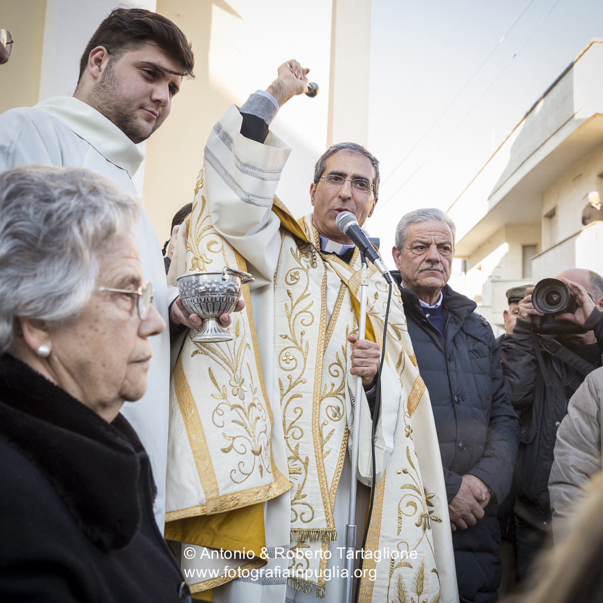 la benedizione degli animali sul sagrato della Chiesa di Sant’Antonio Abate a Nòvoli (LE)