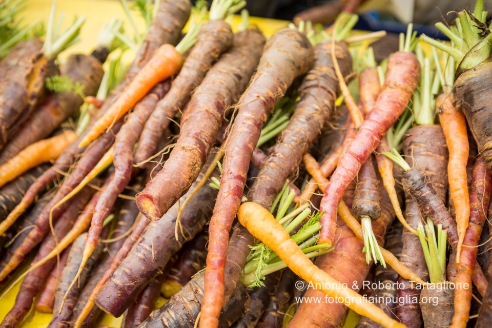 la carota di Tiggiano sulle bancarelle durante la Sagra della Pestanaca