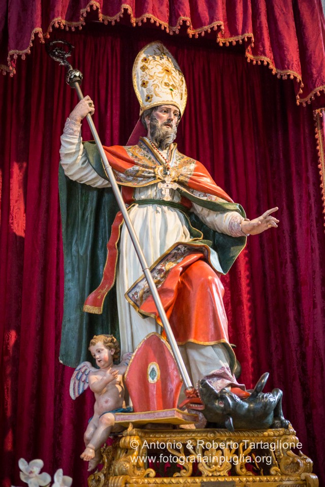 La statua di Sant’Ippazio, protettore di Tiggiano e degli organi maschili, nell’omomima Chiesa.