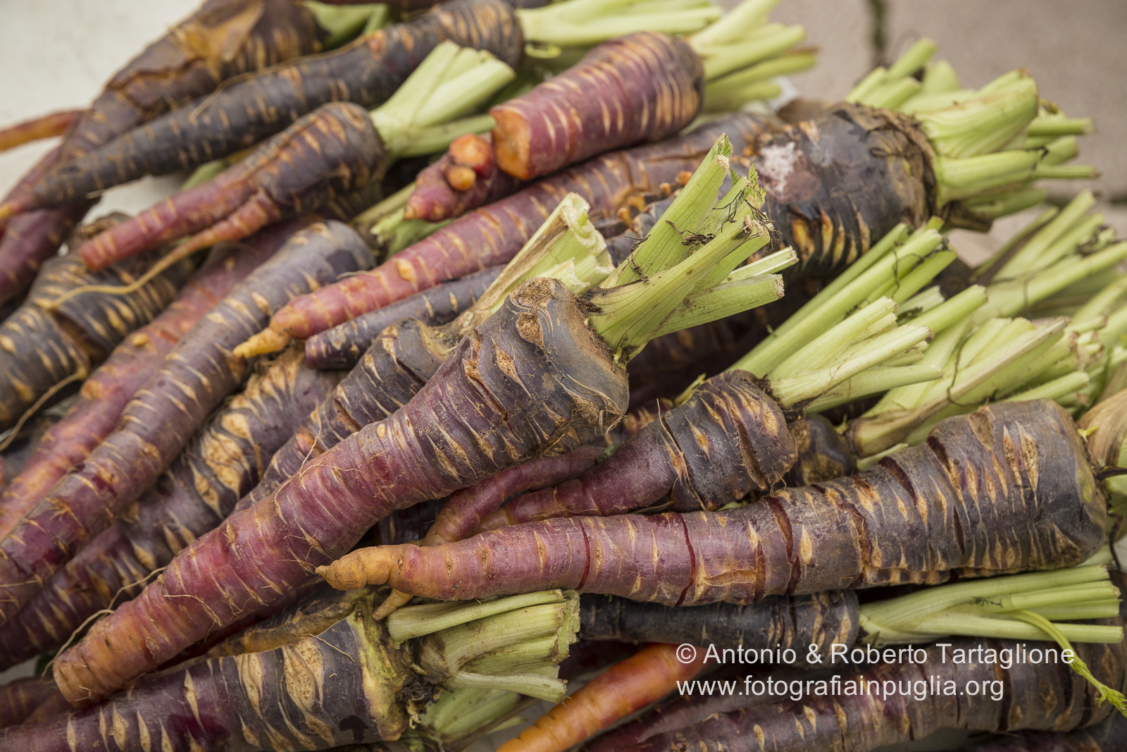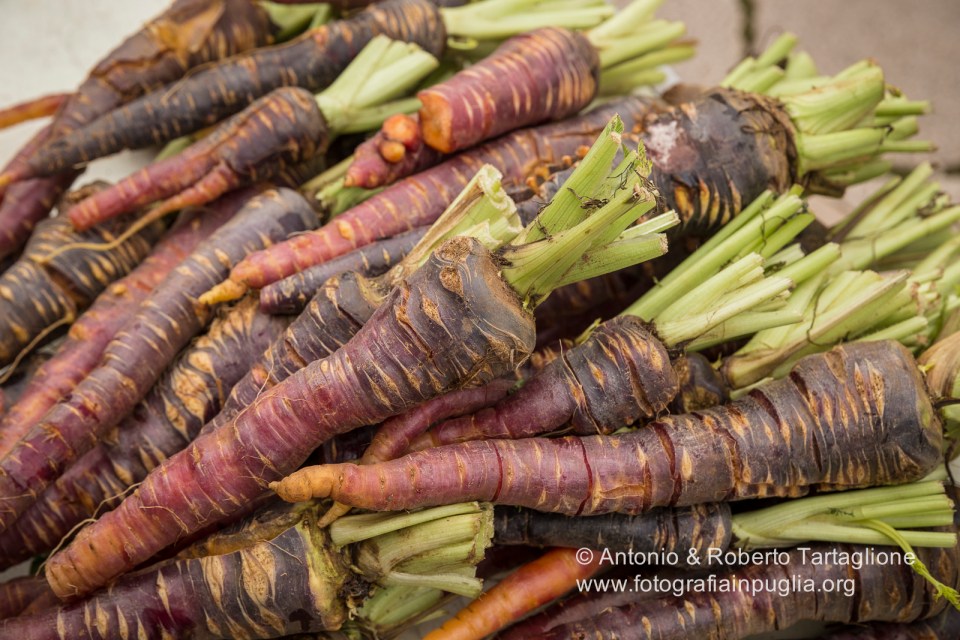 la carota di Tiggiano sulle bancarelle durante la Sagra della Pestanaca