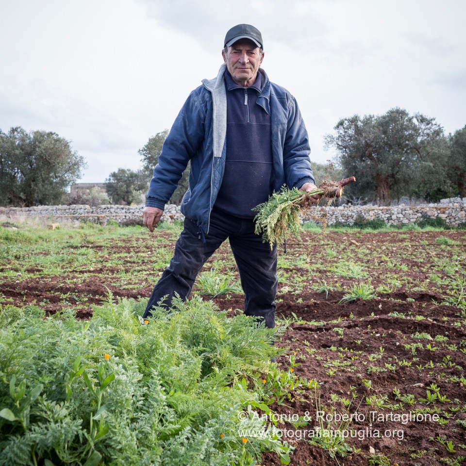 Luigi Marzo, uno degli ultimi custodi della Carota di Tiggiano, ormai coltivata in un’area veramente ristretta.