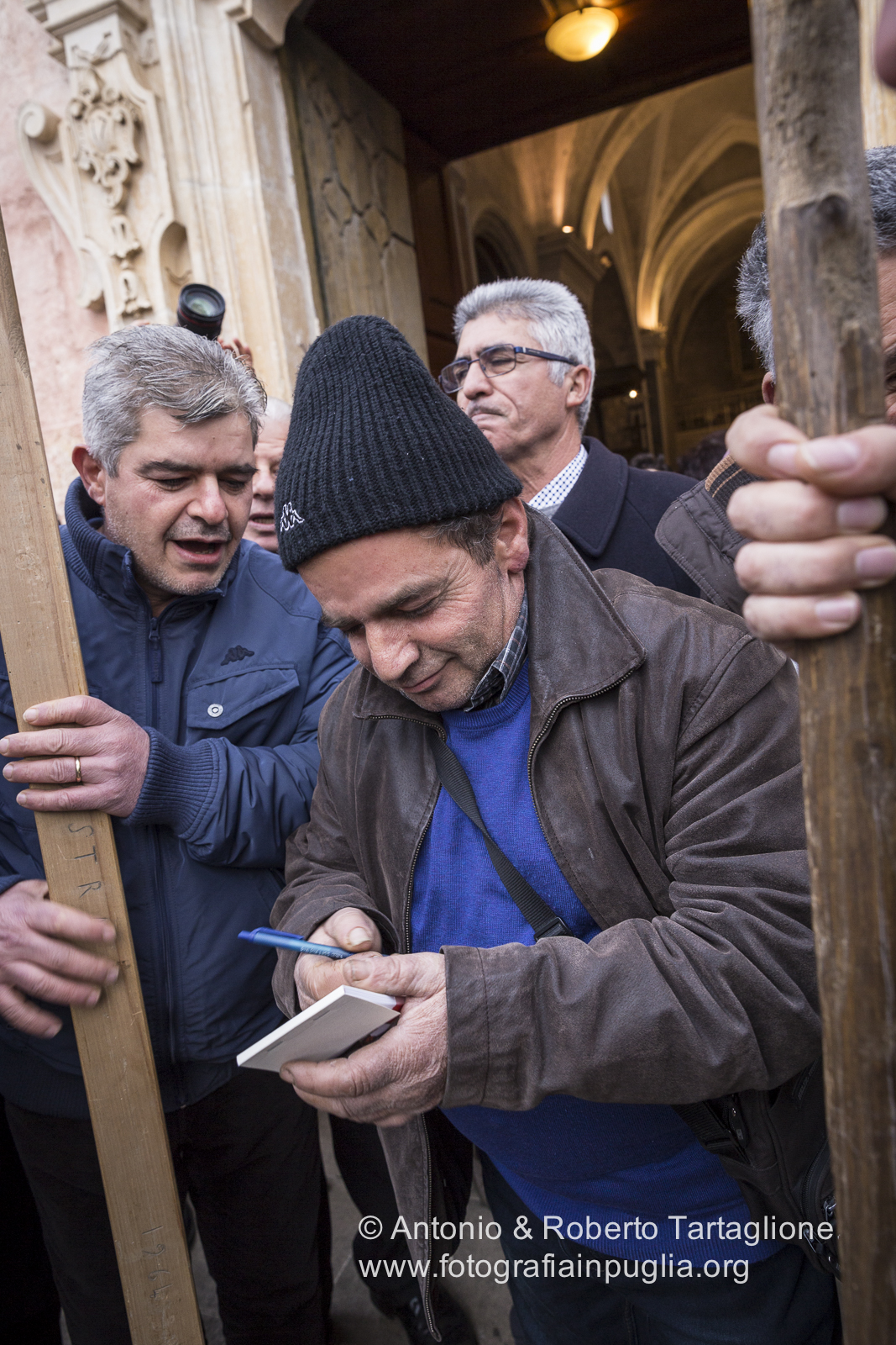 L’asta che precede la proessione. In base alle offerte verranno definiti sia i portatori della statua che colui che deve innalzare lo stendardo, lungo e pesante, davanti la Chiesa.