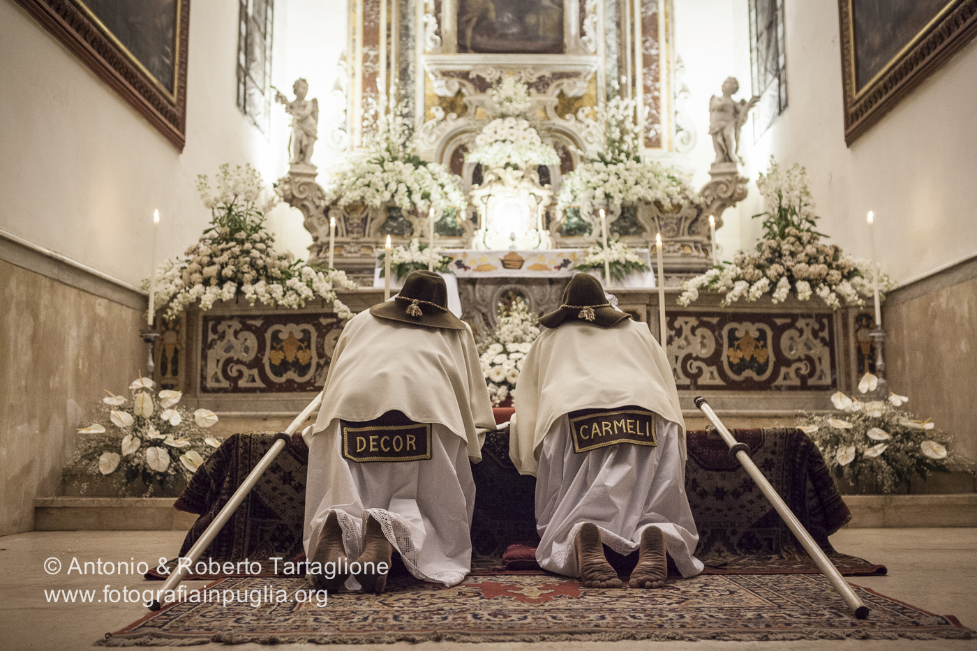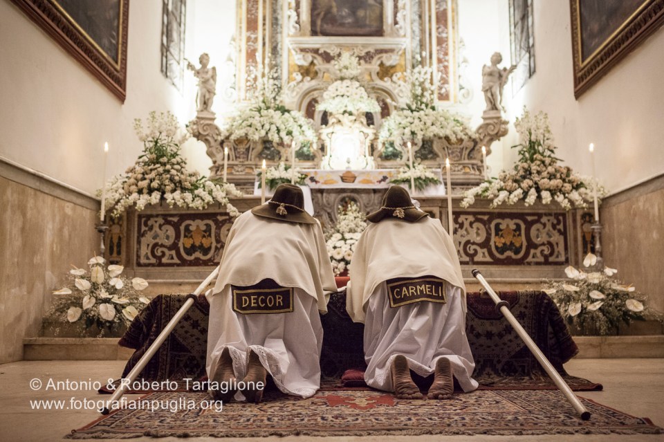 Grottaglie (TA), Centro Storico, sera del Giovedì Santo, Adorazione del Santissimo (“Sepolcri”) da parte dei Confratelli del Carmine (Bbubbli Bbubbli), anno 2013