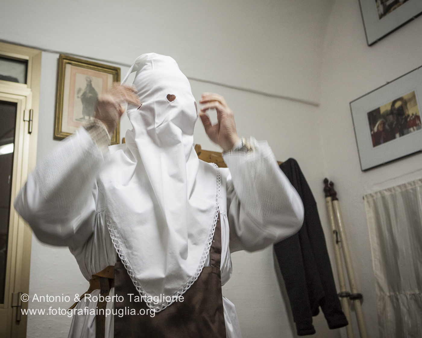 Grottaglie (TA), Centro Storico, sera del Giovedì Santo, Adorazione del Santissimo (“Sepolcri”) da parte dei Confratelli del Carmine (Bbubbli Bbubbli), anno 2013