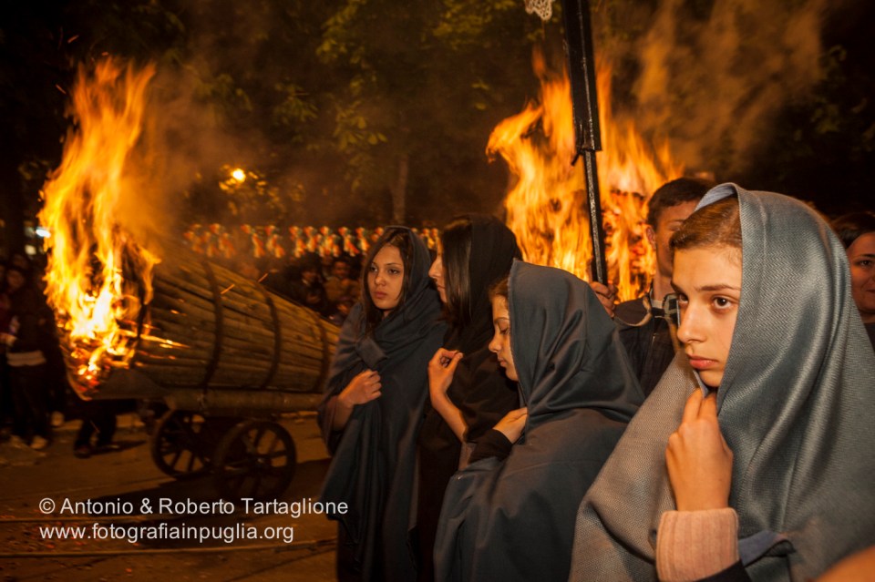San Marco in Lamis (FG), Centro Storico, pomeriggio del Sabato Santo, Processione dell’Addolorata con il Cristo Morto accompagnata dalle Fracchie accese, anno 2011