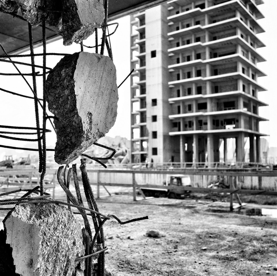 Il cantiere della demolizione di Punta Perotti, il giorno prima dell’esplosione