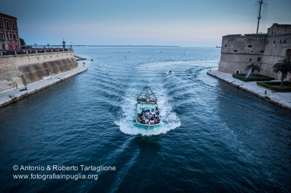 Taranto (TA) – Festa Patronale di San Cataldo -L’ingresso di una barca carica di turisti poco prima del rientro dela Statua di San Cataldo.