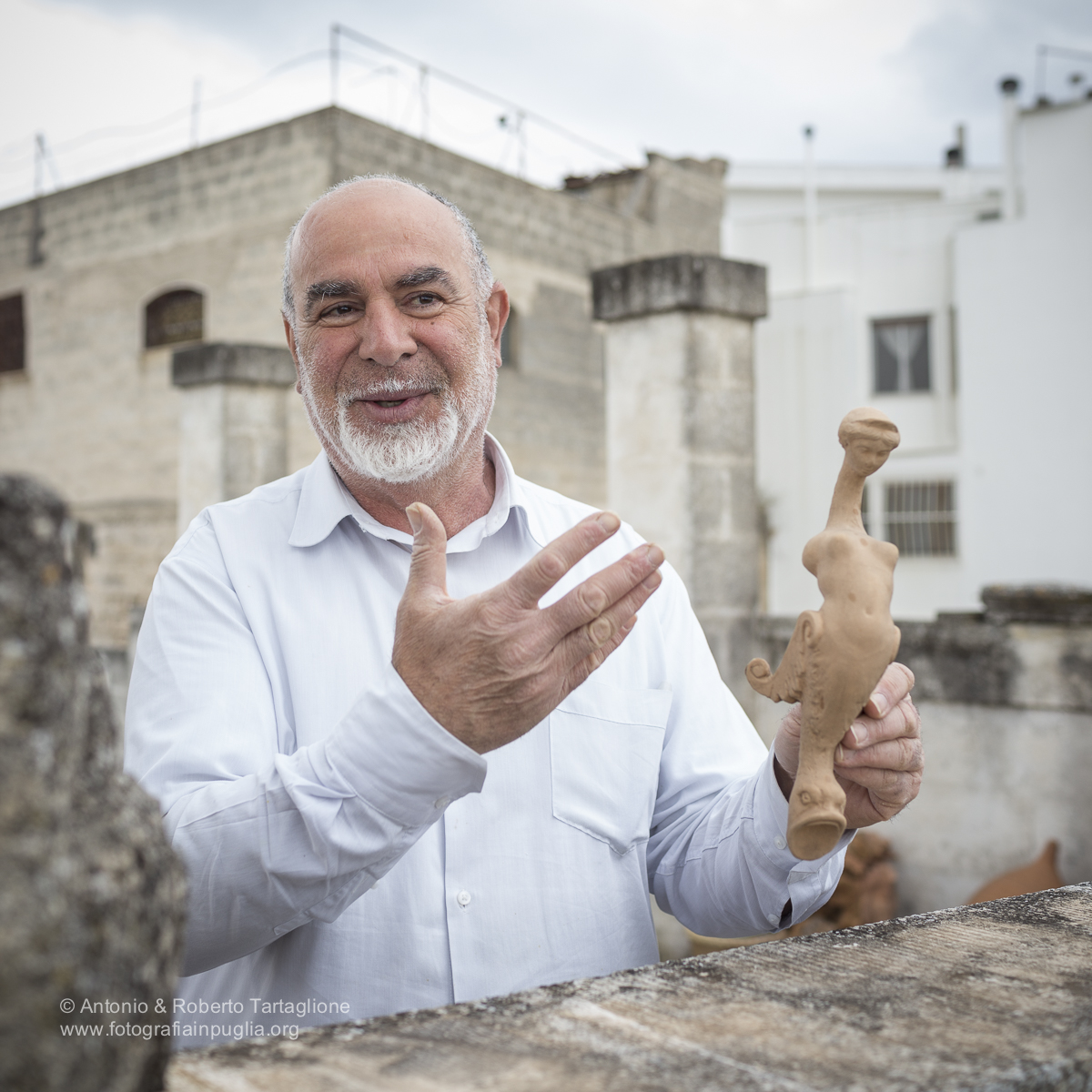 Mimmo Vestita sul terrazzo della bottega a Grottaglie