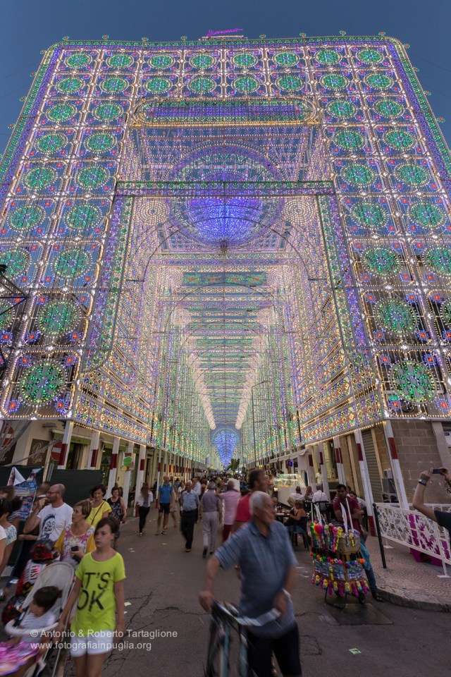 Scorrano (LE) – nella Piazza del paese l’accensione anticipata alle 20,15 crea un suggestivo spettacolo.