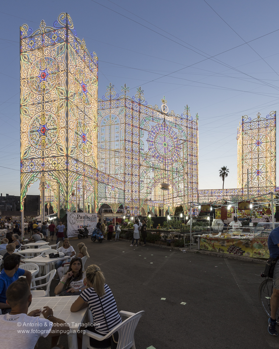 Scorrano (LE) – nella Piazza del paese l’accensione anticipata alle 20,15 crea un suggestivo spettacolo.