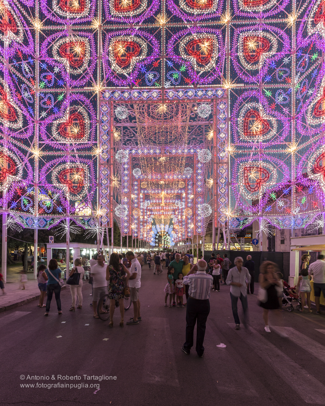 Scorrano (LE) – nella Piazza del paese l’accensione anticipata alle 20,15 crea un suggestivo spettacolo.