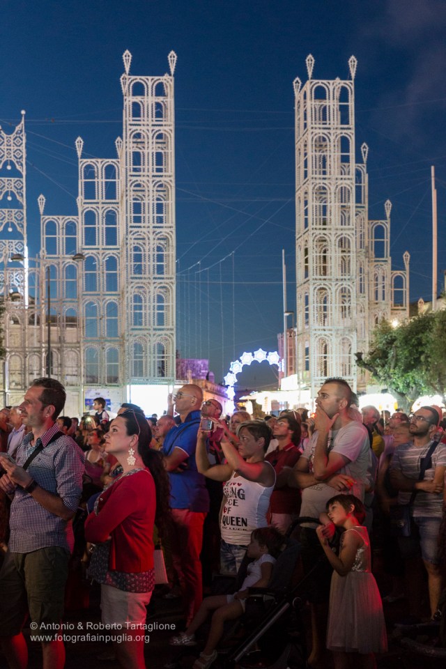 Scorrano (LE) – nella Piazza del paese l’accensione anticipata alle 20,15 crea un suggestivo spettacolo.
