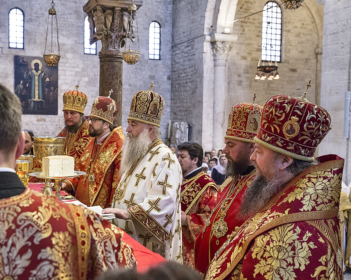 lunedì 22 maggio 2017, il Metropolita di Saratov e Wolski, Longin, (al centro) presiede la liturgia ortodossa nella Basilica di San Nicola a Bari