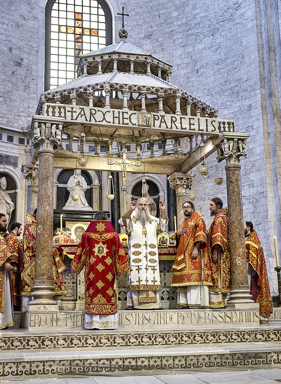 lunedì 22 maggio 2017, il Metropolita di Saratov e Wolski, Longin, (al centro) presiede la liturgia ortodossa nella Basilica di San Nicola a Bari