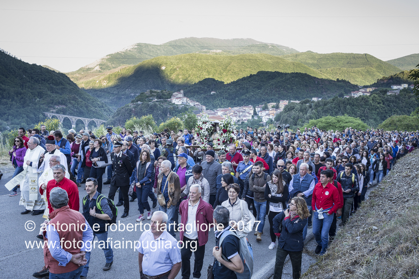 Lagonegro (PZ). La processione esce dal Paese ed inizia a salire sulla strada asfaltata.