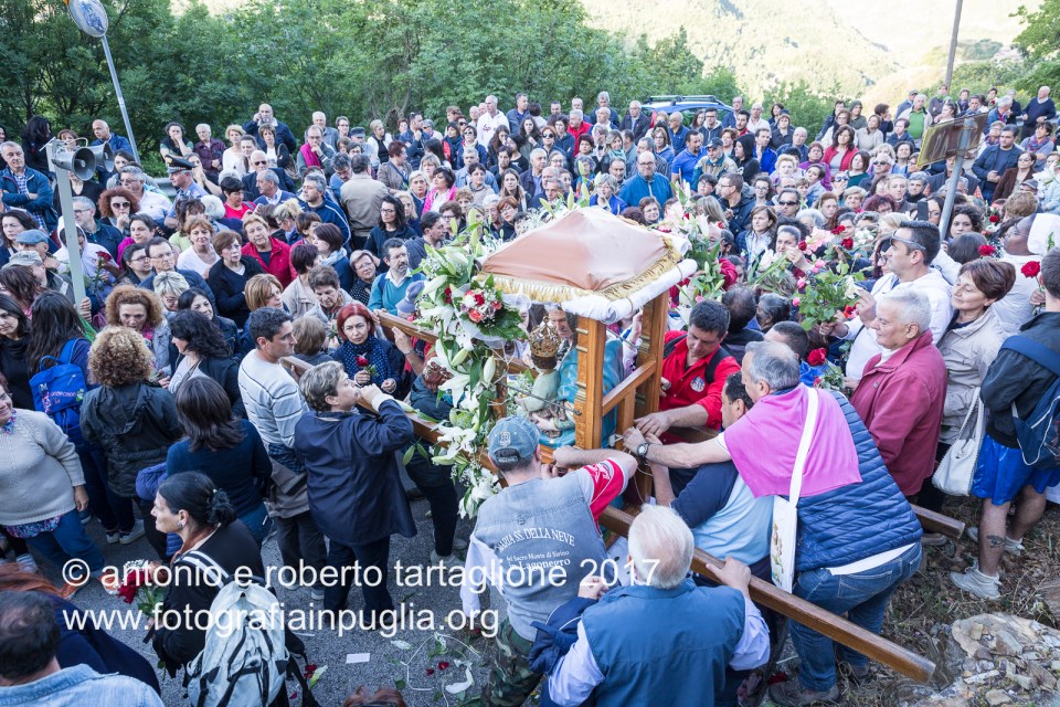 Lagonegro (PZ) La prima sosta in Contrada Grada, dopo una preghiera la statua viene spogliata dei fiori, che vengono distribuiti tra i fedeli che hanno seguito la processione.