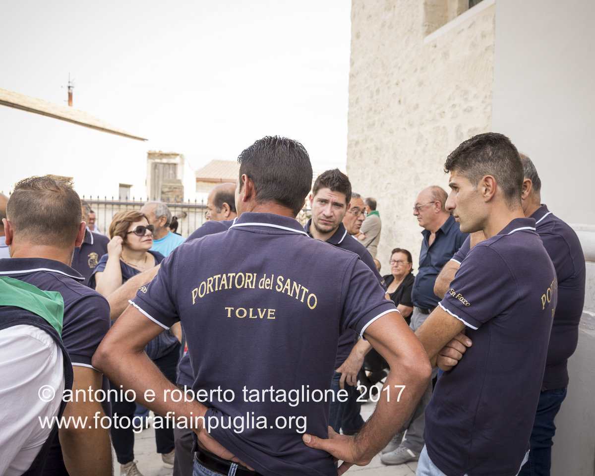 16 settembre 2016, Tolve (PZ), Festa di San Rocco, i portatori si preparano davanti la Chiesa