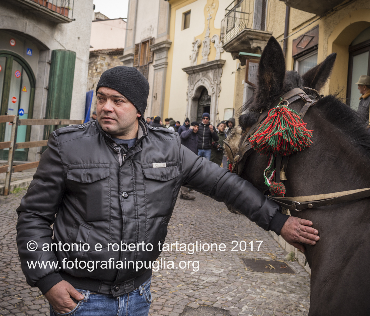 Pignola (PZ), 17 gennaio 2018, festa di Sant’Antonio Abate, la preparazione degli animali prima della corsa rituale