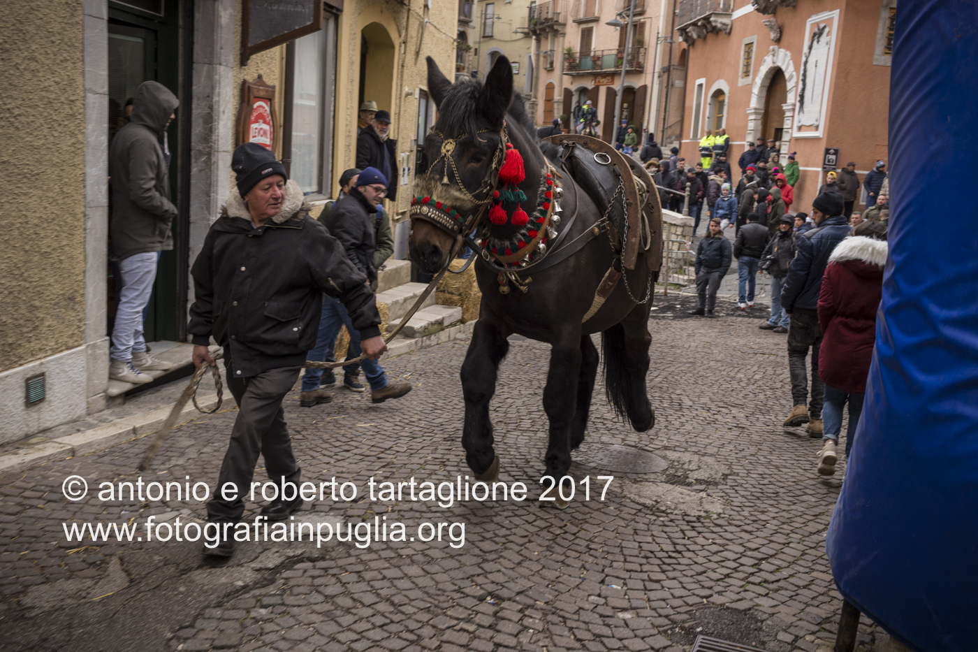 Pignola (PZ), 17 gennaio 2018, festa di Sant’Antonio Abate, la preparazione degli animali prima della corsa rituale