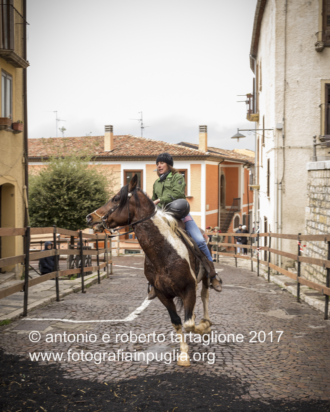 Pignola (PZ), 17 gennaio 2018, festa di Sant’Antonio Abate, la corsa rituale che consiste in tre giri nel centro antico, partendo dalla Chiesa di Sant’Antonio Abate. Ci sono tre categorie distinte: asini, muli, cavalli.