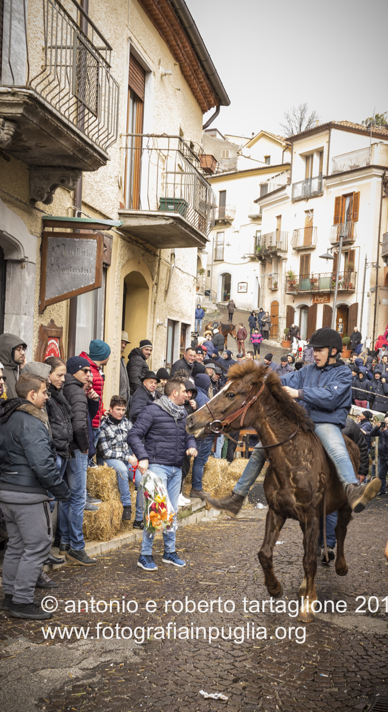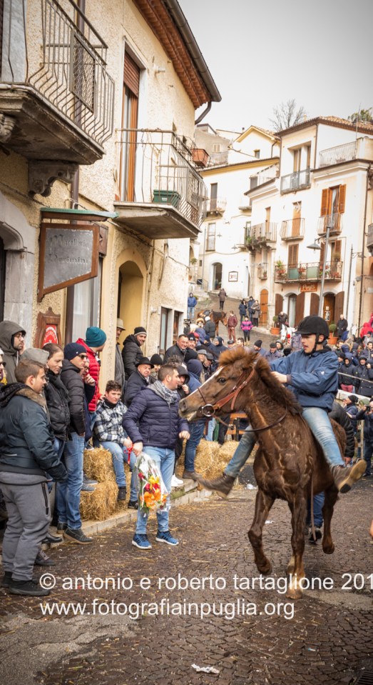 Pignola (PZ), 17 gennaio 2018, festa di Sant’Antonio Abate, la corsa rituale che consiste in tre giri nel centro antico, partendo dalla Chiesa di Sant’Antonio Abate. Ci sono tre categorie distinte: asini, muli, cavalli.