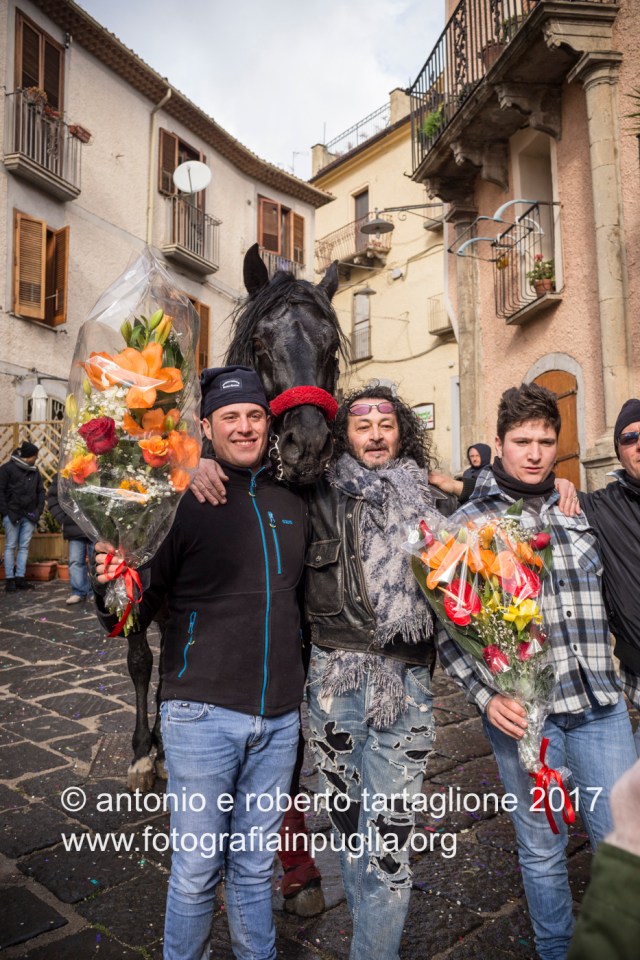Pignola (PZ), 17 gennaio 2018, festa di Sant’Antonio Abate, animali in piazza dopo la corsa rituale che consiste in tre giri nel centro antico, partendo dalla Chiesa di Sant’Antonio Abate. Ci sono tre categorie distinte: asini, muli, cavalli.