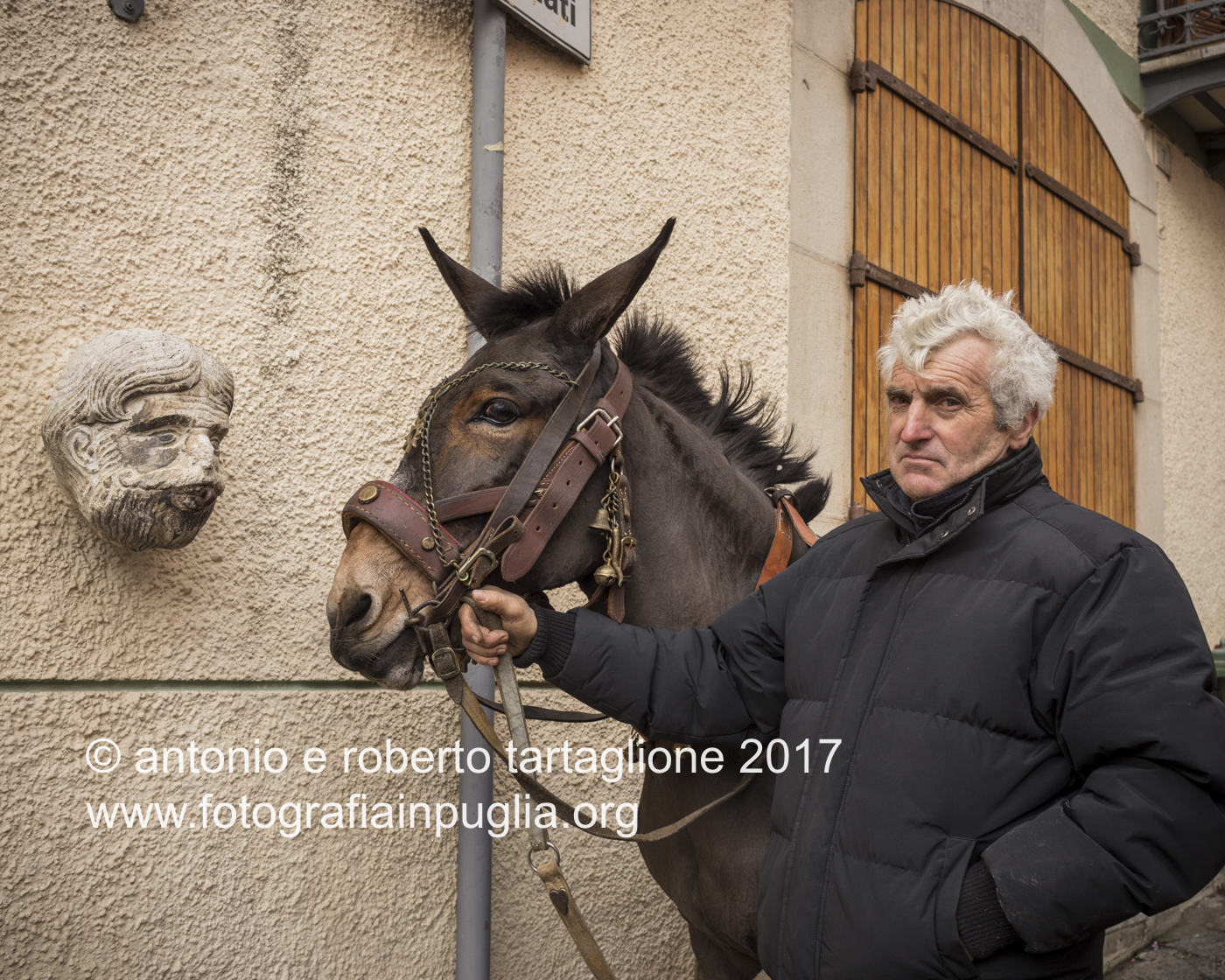Pignola (PZ), 17 gennaio 2018, festa di Sant’Antonio Abate, animali in piazza dopo la corsa rituale che consiste in tre giri nel centro antico, partendo dalla Chiesa di Sant’Antonio Abate. Ci sono tre categorie distinte: asini, muli, cavalli.