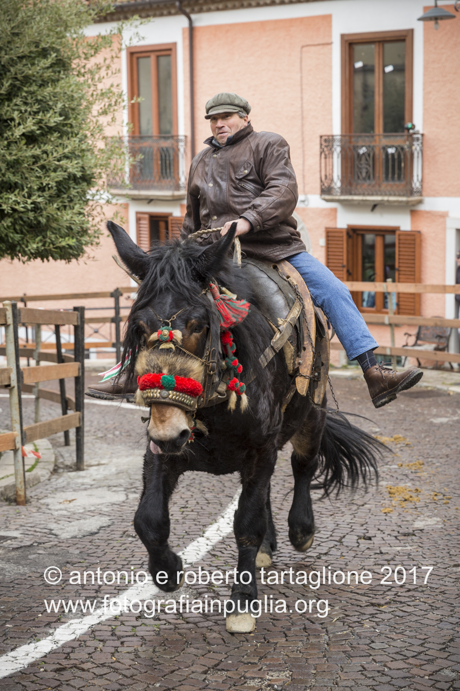 Pignola (PZ), 17 gennaio 2018, festa di Sant’Antonio Abate, la corsa rituale che consiste in tre giri nel centro antico, partendo dalla Chiesa di Sant’Antonio Abate. Ci sono tre categorie distinte: asini, muli, cavalli.