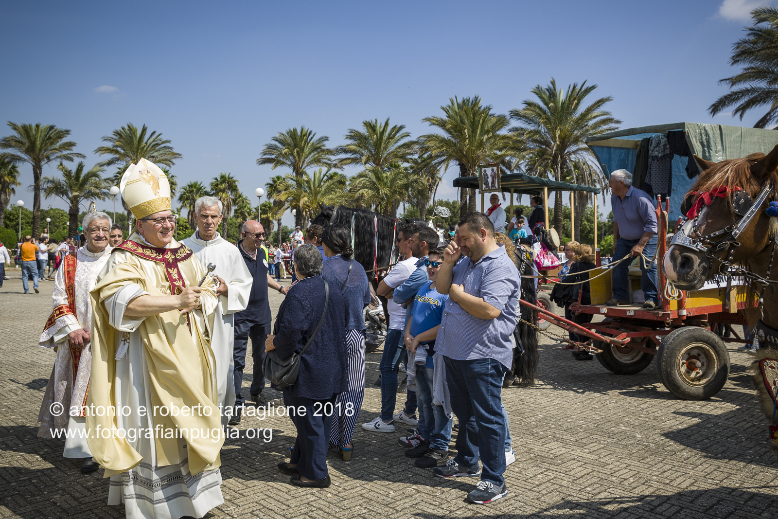 La benedizione dei “traini” davanti al Santuario di San Cosimo alla Macchia, nelle campagne intorno ad Oria (BR), alla presenza del vescovo di Oria Mons. Vincenzo Pisanello