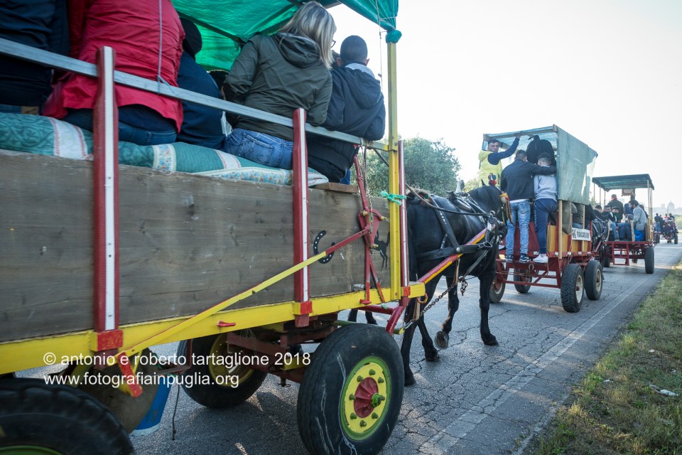 Il pellegrinaggio dei “traini” da Francavilla Fontana ad Oria la mattina della domenica.
