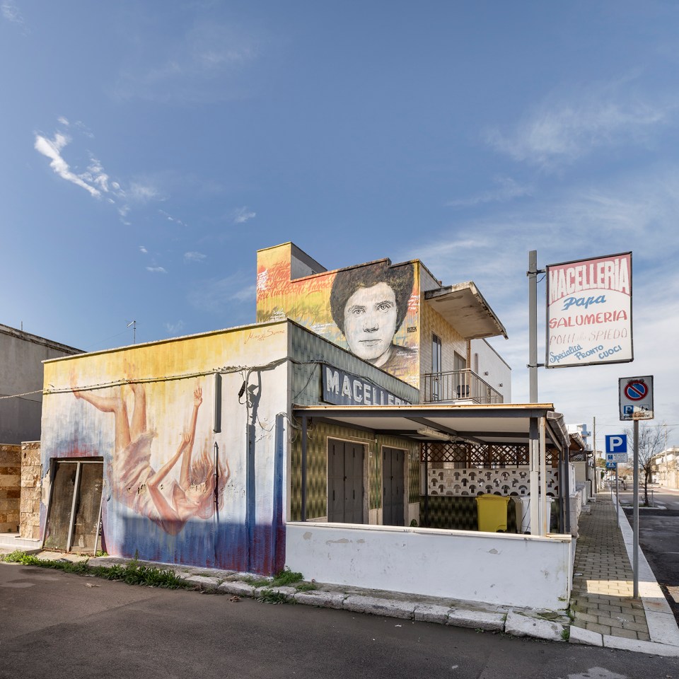 Casalabate (LE) Murales di Rizek (in alto, raffigurante Lucio Battisti) e di Mino di Summa (in basso)