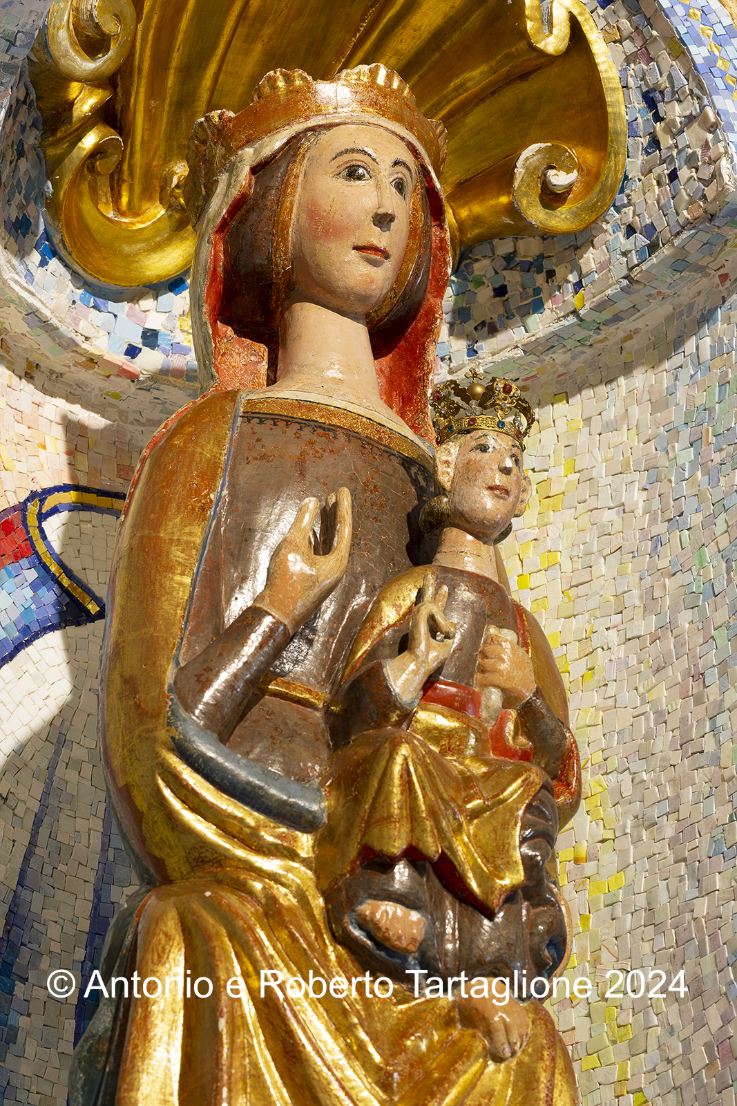 Oppido Lucano (PZ), Santuario della Madonna del Belvedere. La statua della Madonna posta sull’altare, in legno policromo, risale al XIV secolo.