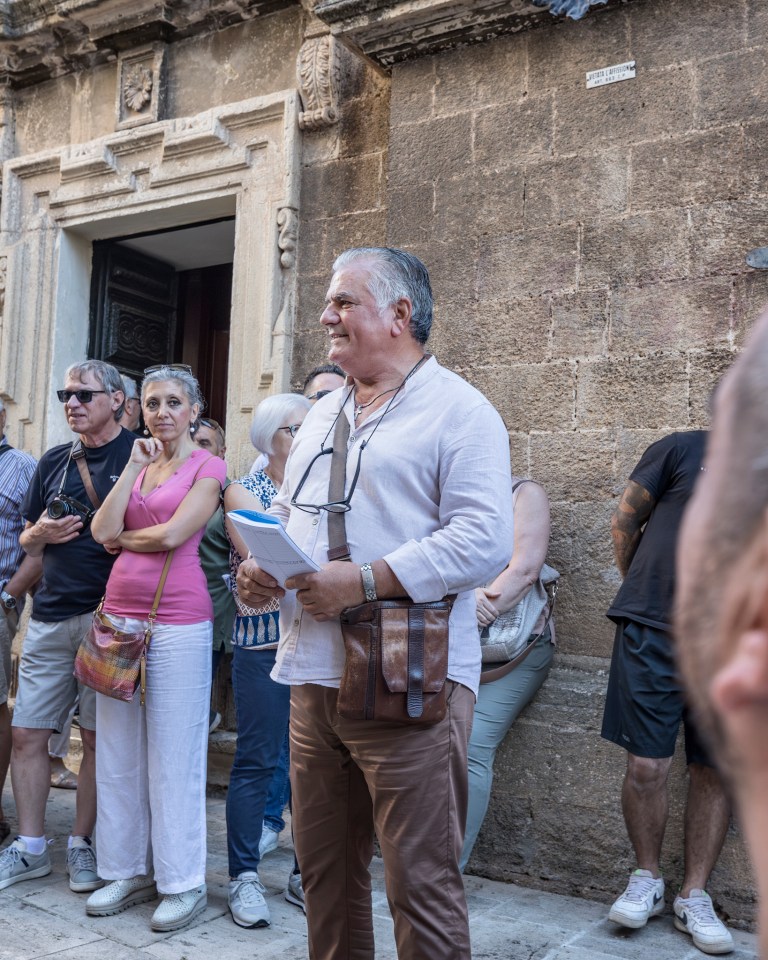 SCORRANO (LE), davanti la Chiesa della Trasfigurazione del Signore (o Chiesa Madre), mattina del 6 luglio. L’asta per l’assegnazione dei posti.