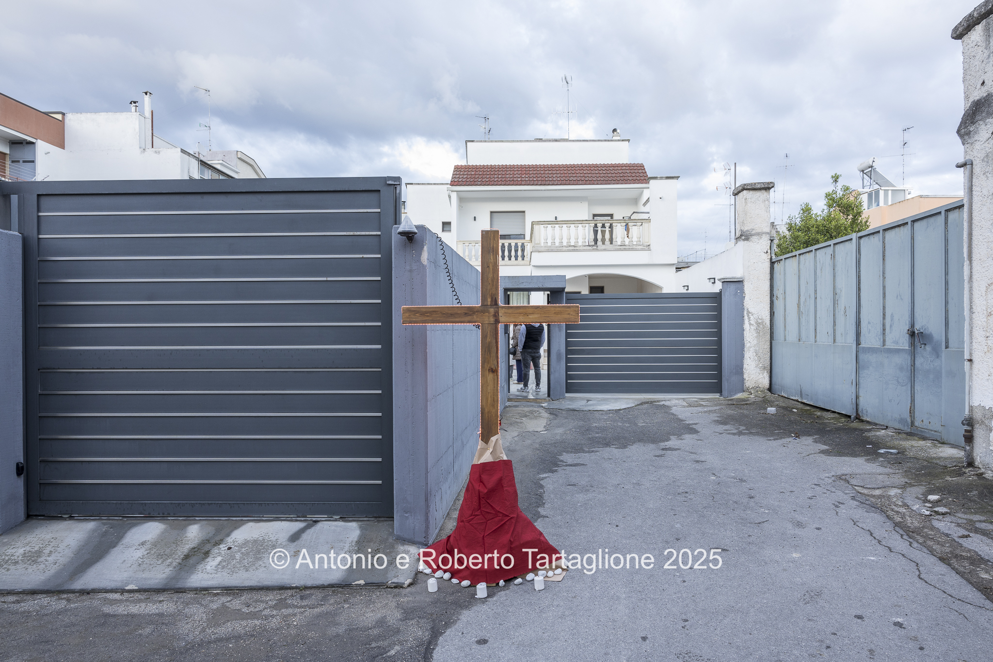Ceglie del Campo – Bari, pomeriggio del Giovedì Santo. Famiglia di Luigi Pugliese, la Croce all’esterno dell’abitazione per segnalare il Mistero in mostra.