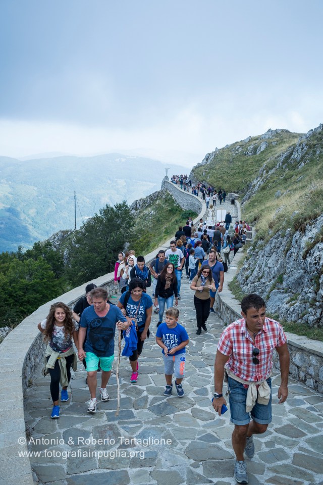 la salita dei pellegrini al tramonto del sabato che precede la processione.